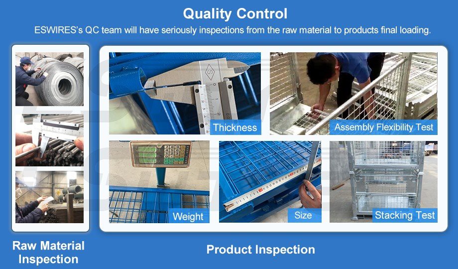 Steel Stillage Pallet Cages ผลิตจากเหล็กเหนียวคุณภาพสูง Q235 และงานฝีมือ ทำให้มั่นใจได้ว่ามีความมั่นคง ทนทาน และไม่เสียรูปง่าย กระบวนการผลิตใช้เครื่องเชื่อมหุ่นยนต์เพื่อปรับปรุงคุณภาพและประสิทธิภาพและรับประกันเวลาการส่งมอบ